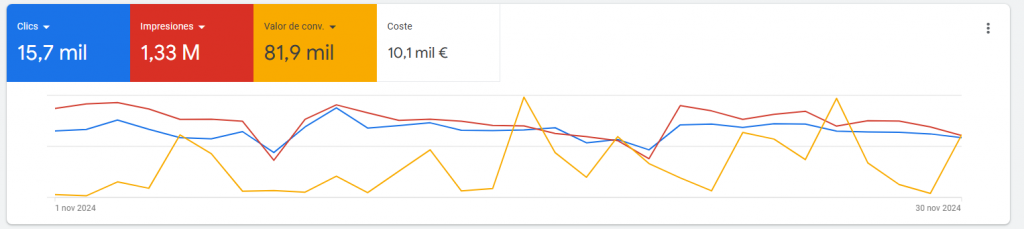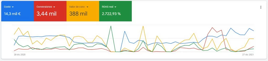 Para marca de moda online, invirtiendo solo 22.000€ (ROAS 1.930%).